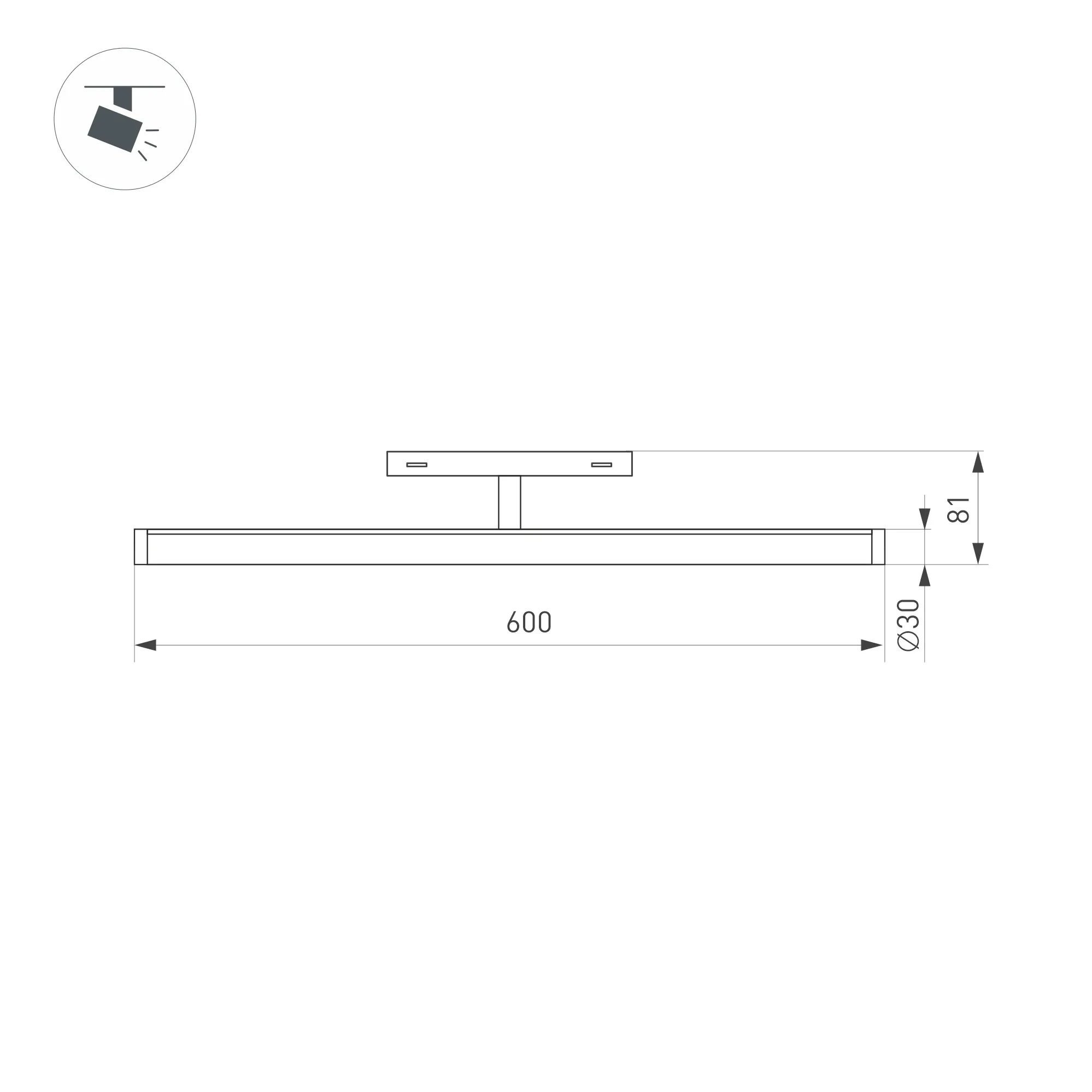 Светильник для магнитных треков MAG-ORIENT шириной 26 мм. Мощность 20 Вт, св. поток 2000 лм, 100 лм/Вт, теплый 3000 K, CRI>90, угол 180°, напряжение питания 48 В. Черный фигурный корпус из алюминия, экран поликарбонат, степень защиты IP20. Размер: диаметр 30 мм, длина 600 мм, высота 81 мм. Монтаж на трек MAG-ORIENT. Пульсация <1%.