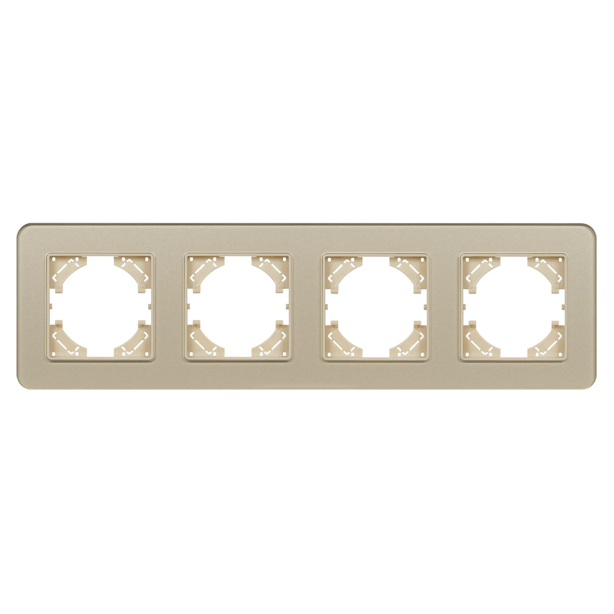 Рамка стеклянная на 4 поста, под встраиваемый механизм. Цвет - золотой. Уровень герметичности IP20. Ориентация монтажа - горизонтальная (основным ориентиром служат посадочные выступы для накладки механизма).