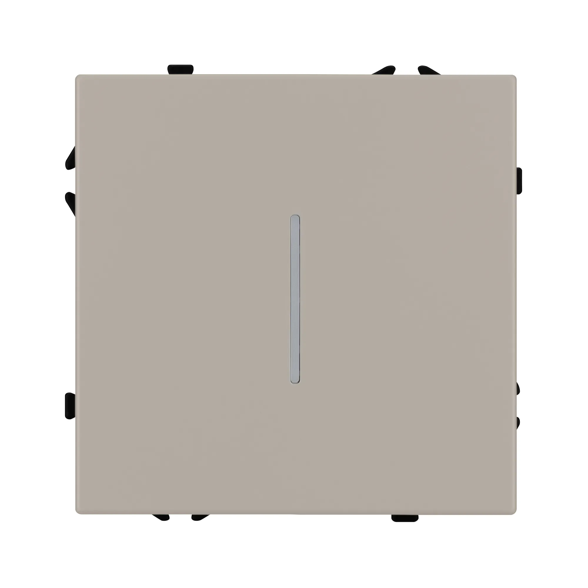 Механизм выключателя света клавишный на 1 пост 1 клавиша (непроходной). Цвет - кашемир, с Soft-Touch поверхностью. Клавиша имеет LED подсветку - cинего свечения. Без фронтальной рамки. Уровень пылевлагозащиты IP20. Выключатель устанавливается в стандартный круглый подрозетник круглого сечения диаметром 60мм.
